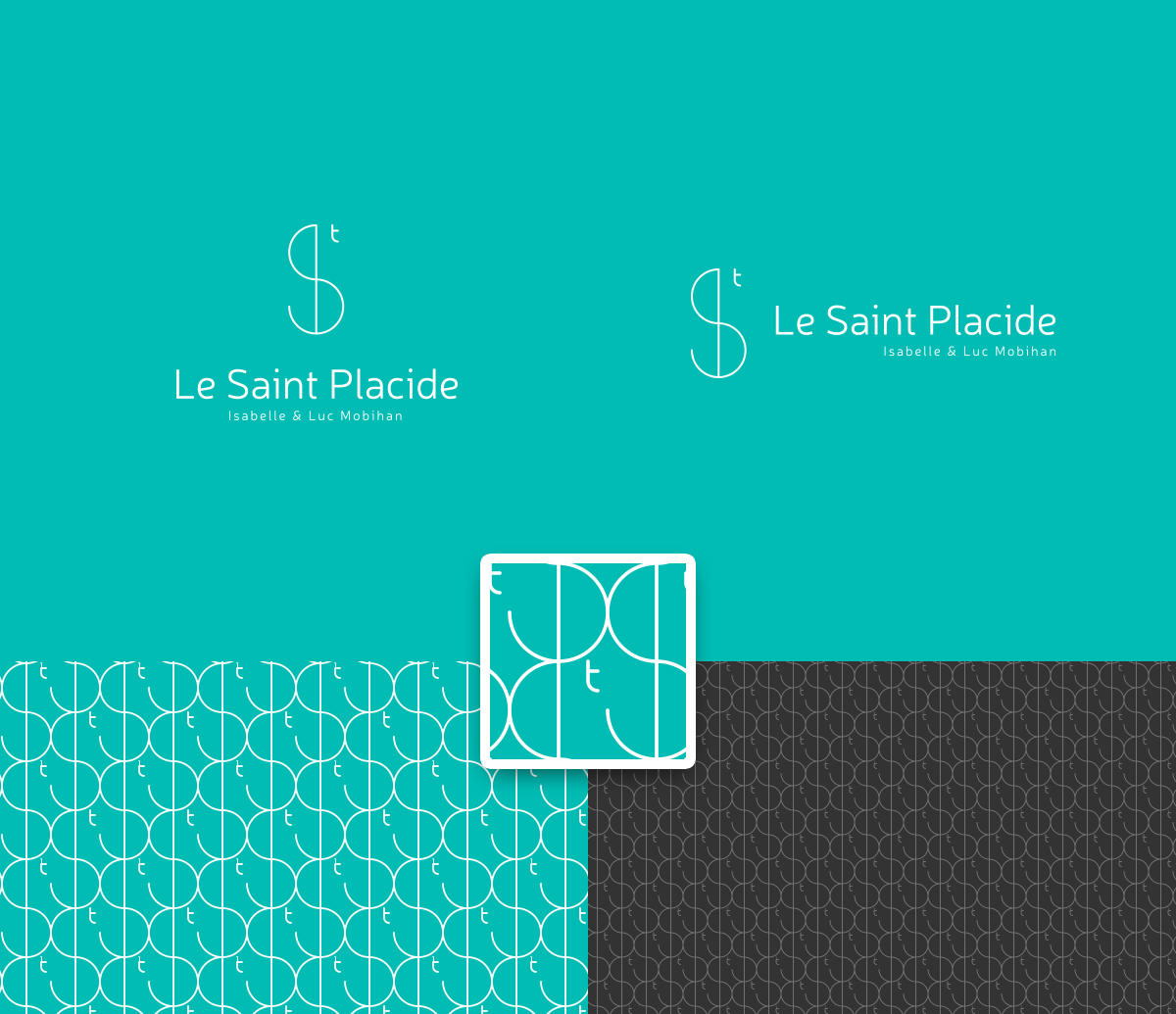 Le Saint Placide maintenant ! Nous avons travaillé sur un symbole/monogramme synthétisant le Saint Placide > St P. Avec des formes géométriques élémentaires, nous avons obtenu une synthèse empruntant son équilibre au Yin et au Yang. En effet, le mot « placide » ainsi que la cuisine du restaurant nous auront évoqué le calme, la sérénité, le zen, l’équilibre. Tout en sobriété , et en reprenant la typographie de la marque mère (la « Neris »), nous avons campé un logo monochrome synonyme de raffinement et d’équilibre. Bonus : le symbole se prêtant bien à la répétition, il a donné naissance à un joli motif à utiliser dans moults applications.