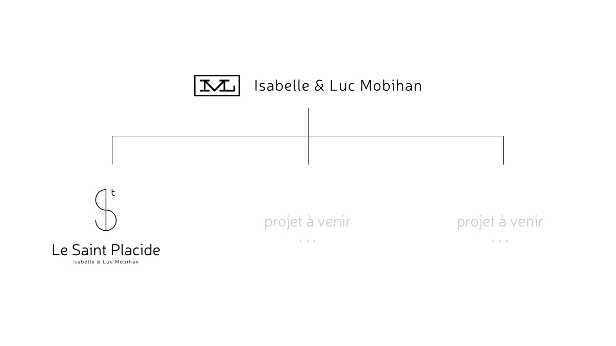Dans le but de hiérarchiser et rationaliser tout ça, nous avons préconisé à Isabelle & Luc de considérer leur binôme (leurs deux noms) comme une marque mère, qui aurait pour enfants plusieurs projets (Le Saint Placide étant le premier). Ainsi, nous signerions tous les projets avec la typographie définie pour le logo de la marque mère et obtiendrions de ce fait une cohérence entre les différentes entités. Ci-dessous, en introduction du redesign de l’identité du restaurant, le logo de la marque mère Isabelle & Luc Mobihan.